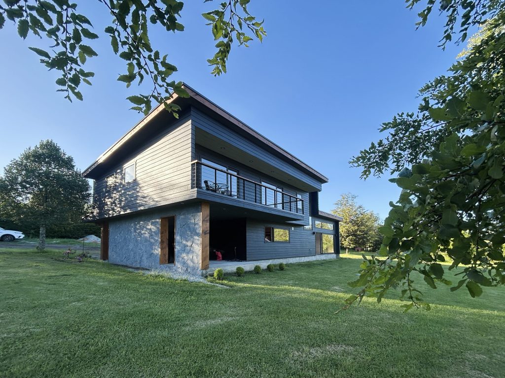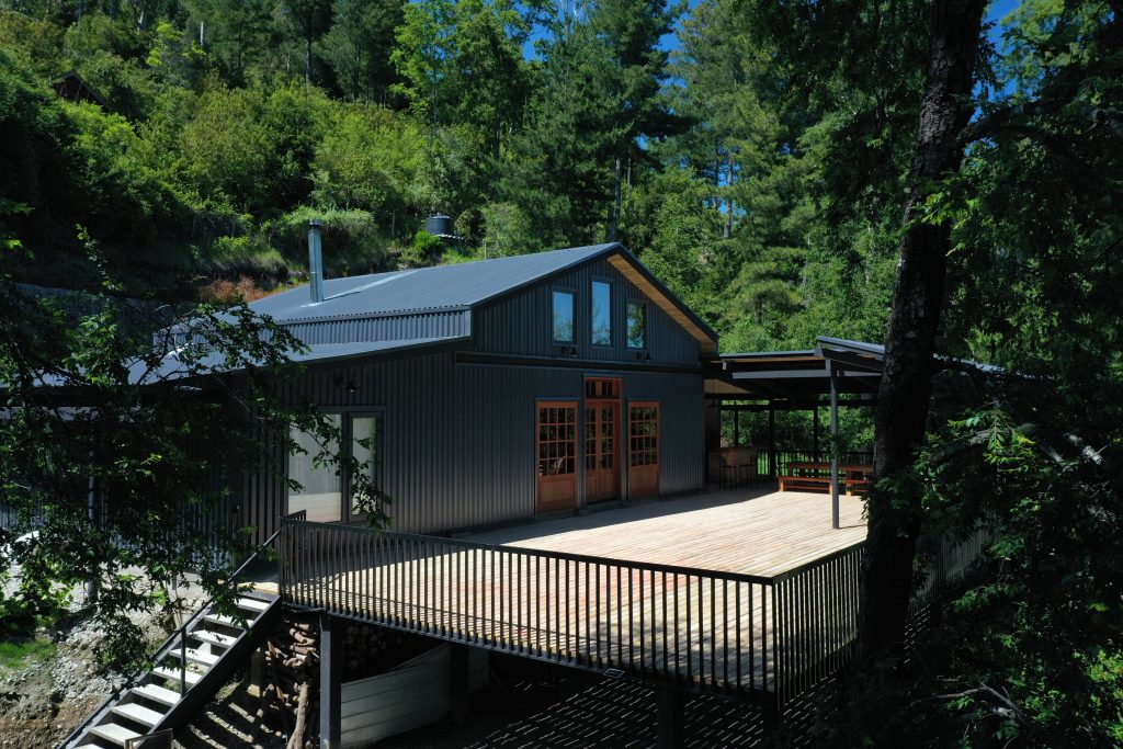 Aquí, la arquitectura parece haber aprendido ese mismo idioma. Galpones amplios y honestos, levantados como cuerpos que resisten el paso del tiempo; techos a dos aguas que no buscan estilizar el paisaje sino dialogar con la lluvia, con la nieve ocasional, con el peso del cielo; estructuras de madera nativa que crujen, respiran y envejecen con dignidad. Nada es ornamental por capricho. Todo responde a una necesidad, a un clima, a una forma de estar en el mundo.