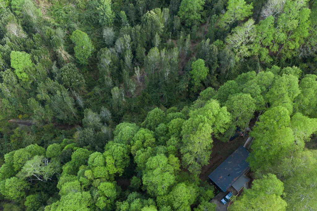 No busca imponerse ni llamar la atención. No grita su autoría ni compite con el entorno. Se posa. Espera. Observa. Como el pangi, entiende el territorio antes de intervenirlo. Reconoce los tiempos largos, la humedad persistente, el peso del invierno, la paciencia que exige construir en el sur. Y desde ahí actúa.