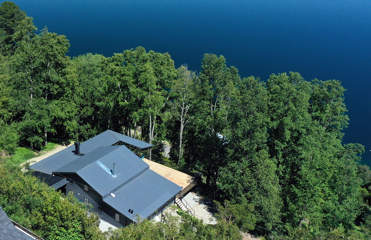 En ese trayecto, su arquitectura no pierde el rumbo porque está anclada al lugar. Al bosque que se filtra por los ventanales, al lago que obliga a orientar la casa con cuidado, al viento que modela las cubiertas, a la lluvia que define los umbrales. Cada decisión parece tomada con la conciencia de quien sabe que el territorio no perdona el descuido.